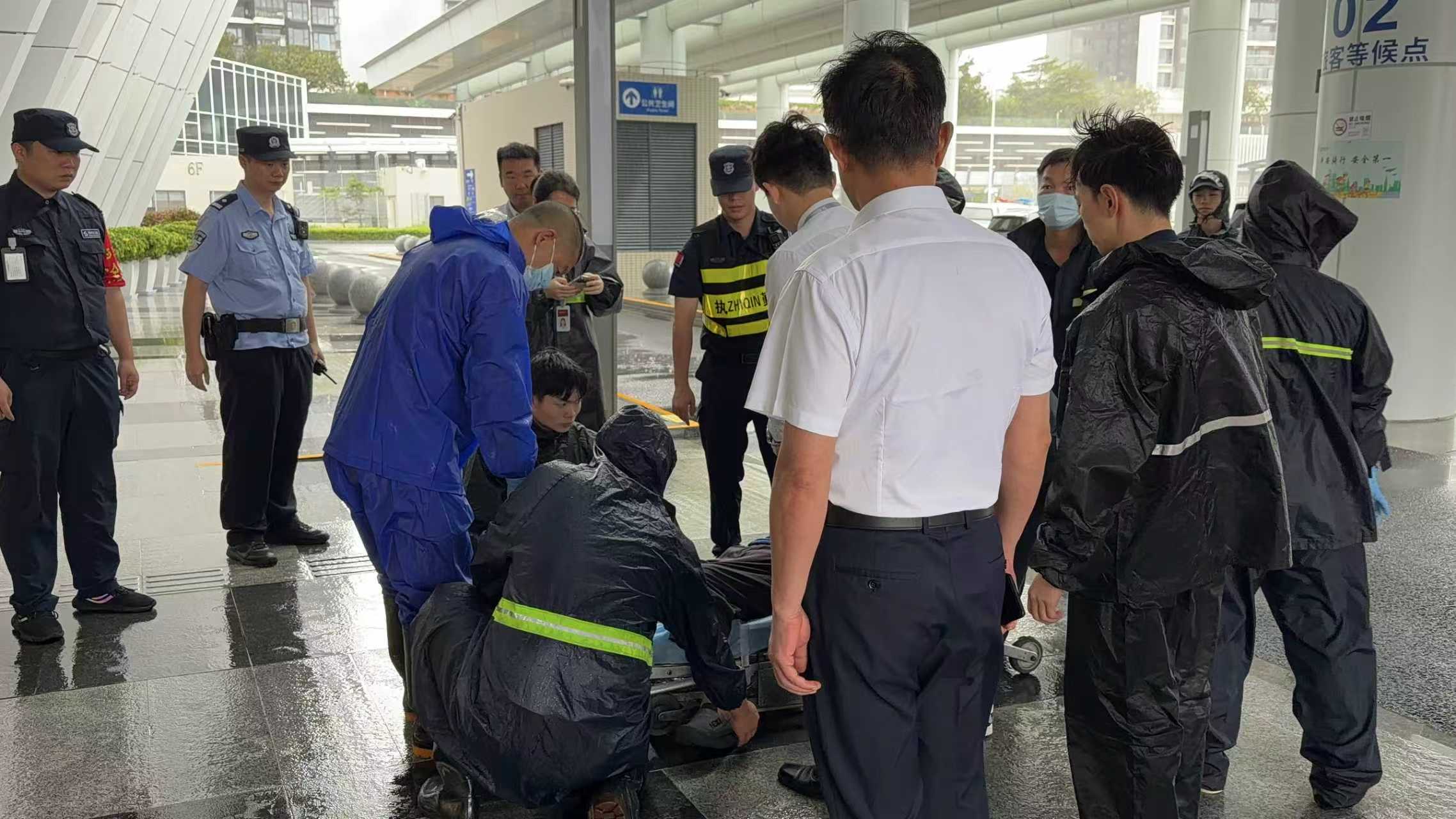 24日10時,特發(fā)服務(wù)下屬口岸公司在蓮塘口岸二樓入境大廳接到緊急求助,兩名旅客中一人因腰部摔傷,出現(xiàn)嘔吐、呼吸困難癥狀且需坐輪椅就醫(yī)。面對“五!逼陂g的交通困境,現(xiàn)場保安隊(duì)員第一時間呼叫增援并撥打120,3分鐘內(nèi)值班崗、醫(yī)療協(xié)助崗等多崗位人員迅速到位,一邊穩(wěn)定旅客情緒、詳細(xì)了解傷情以精準(zhǔn)對接急救中心;等待期間為通關(guān)人員主動提供雨衣、飲用水和食品,在臺風(fēng)呼嘯的窗外,用高效協(xié)作與暖心服務(wù)搭建起生命通道。