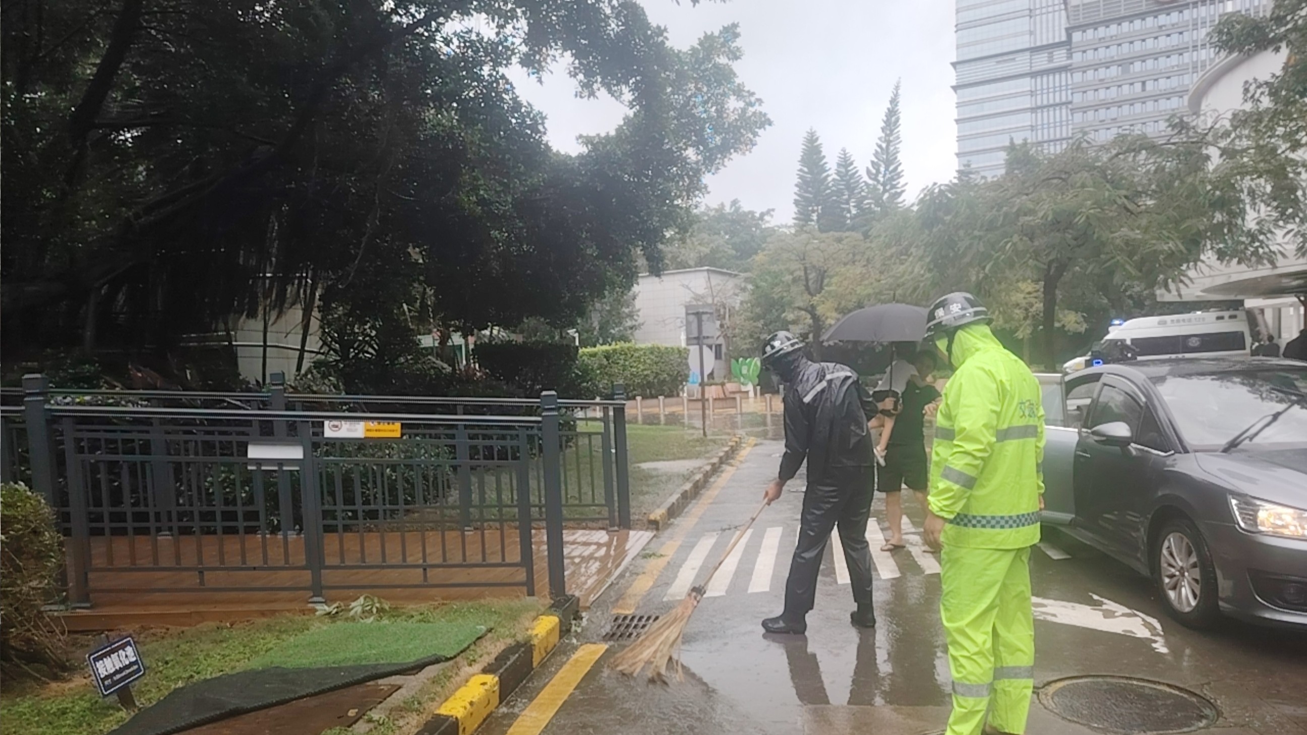 在深圳市兒童醫(yī)院,特發(fā)服務(wù)團(tuán)隊(duì)針對重點(diǎn)防汛部位提前布置防汛沙袋等物資,對主要出入口設(shè)施進(jìn)行加固,并對電力系統(tǒng)開展全面隱患排查,最大限度降低臺風(fēng)可能帶來的影響。臺風(fēng)過后,工作人員立即投入清理工作,重點(diǎn)疏通下水口,防止落葉堵塞造成路面積水,確保醫(yī)療服務(wù)環(huán)境安全有序。
